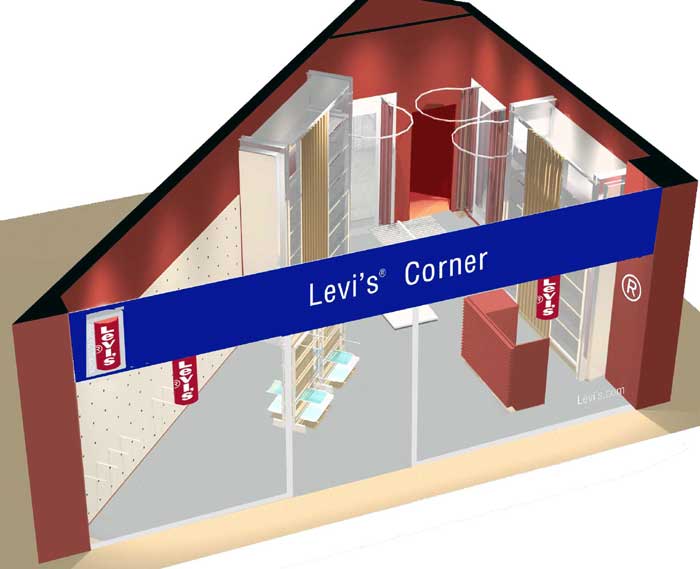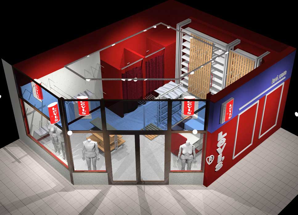 - A+D PORTFOLIO: Projekt stoiska Levi's, Galeria Centrum, WAW, PL