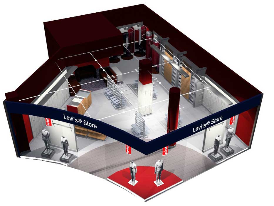 - sklep flagowy Levi's, Galeria Mokotów, projekt sklepu